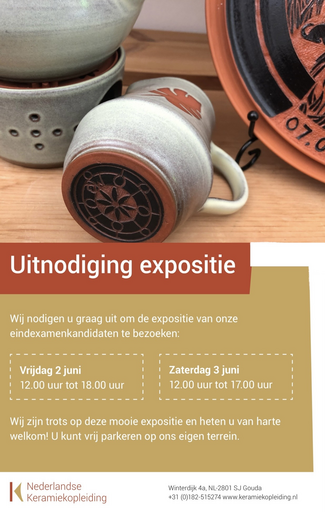 2 en 3 juni aanstaande de expositie van mijn eindexamen expositie draaien aan de Nederlandse Keramiekopleiding Gouda